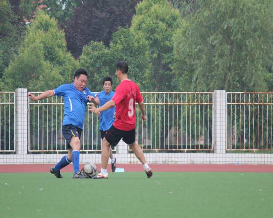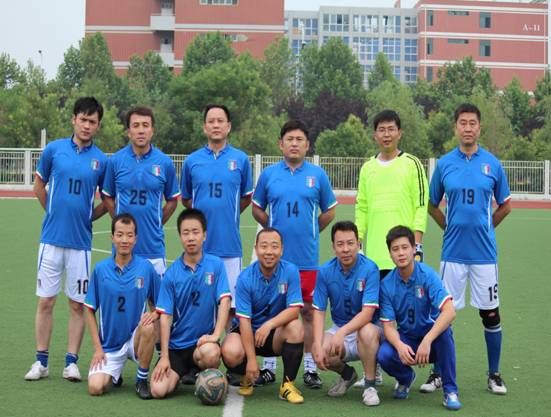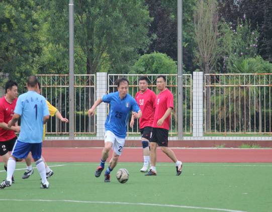 2014年10月18日下午3点,我校教工足球协会足球队与来访的河南机电专科学校教工足球队在西区操场进行了一场足球友谊赛。经过上下半场共120分钟的激烈角逐,我校教工足球队最终凭借王泉海老师(1)、刘佳老师(1)和丁勇老师(5)三位队员的7粒进球,以7:4的总比分战胜河南机电专科学校教工足球队。