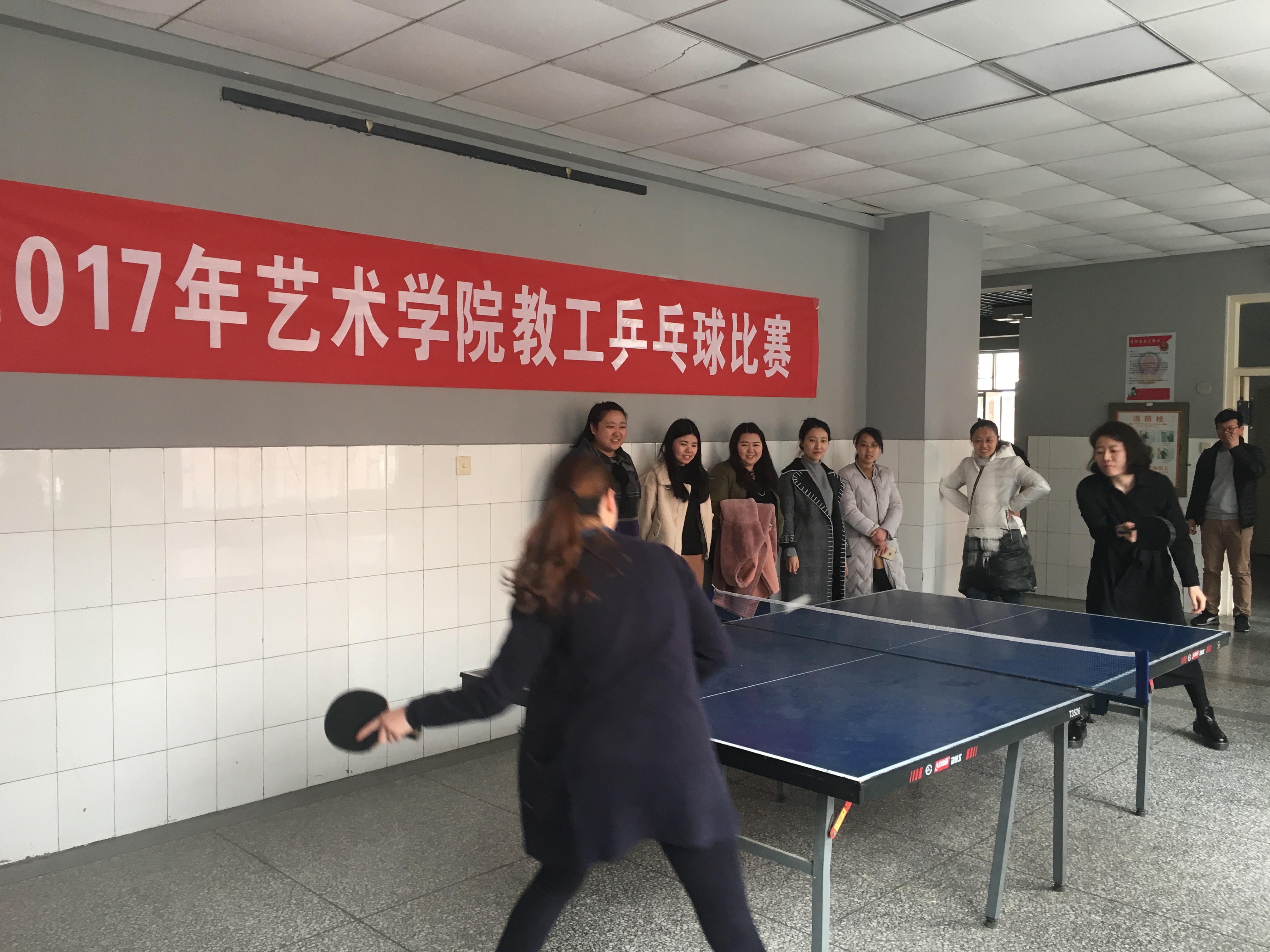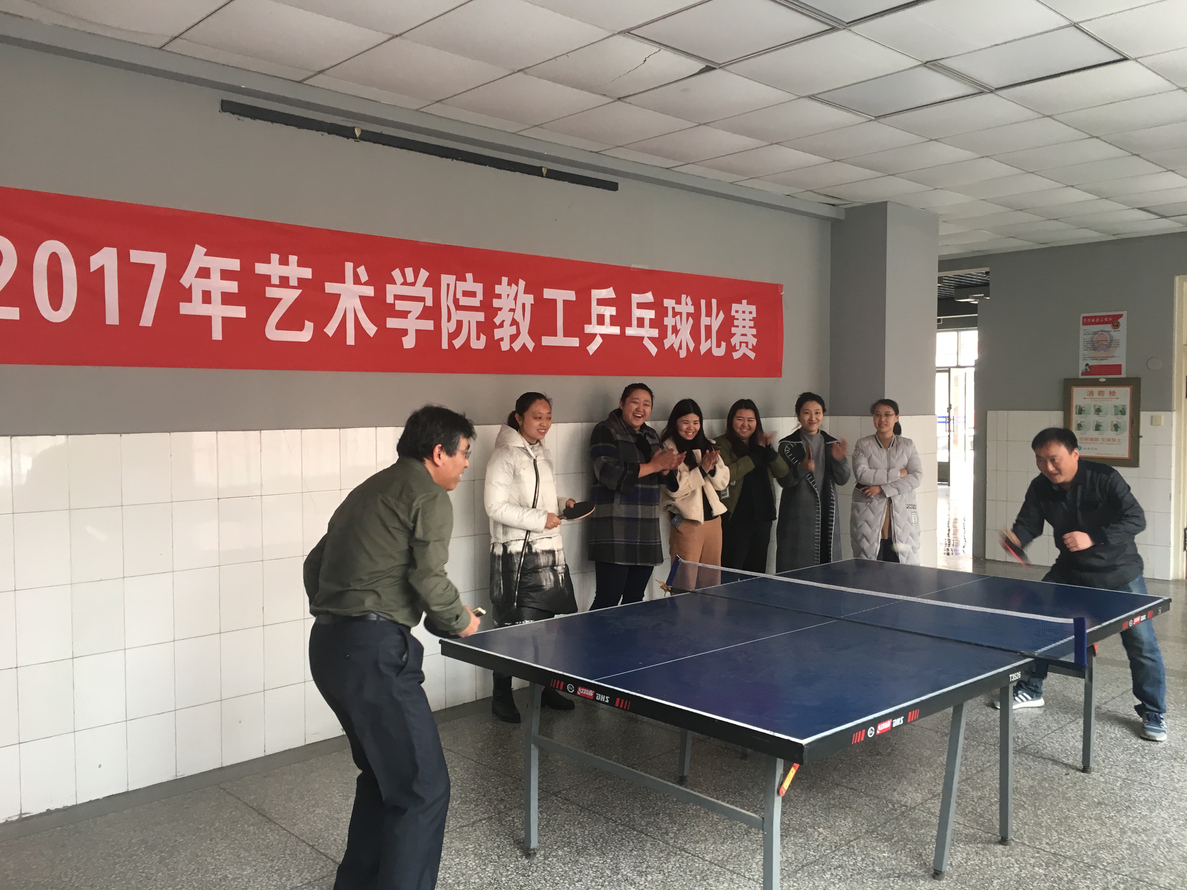 为深入开展全民健身运动,活跃教职工业余文化生活,提高教职工身体素质,增进教职工的交流与友谊,促进各系、部之间的团结与合作,艺术学院于2017年2月28日至3月3日举办了教职工乒乓球比赛。大家对这次比赛高度重视,赛前积极准备刻苦训练,在比赛中队员们不畏强手,敢打敢拼,奋力拼搏,最终胜出的三位男教工和二位女教工将代表院系参加学校的教职工乒乓球比赛。