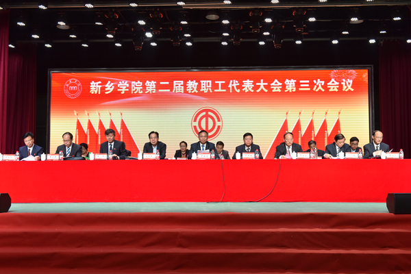 4月27日上午,新乡学院第二届教职工代表大会第三次会议在西区多功能厅顺利召开。校领导丁庭选、刘兴友、阎宏斌、杨士斌、吴中、刘翔、王选年、陈业宏、张宝林出席会议;157名正式代表、52名列席代表、11名特邀代表参加了会议。
